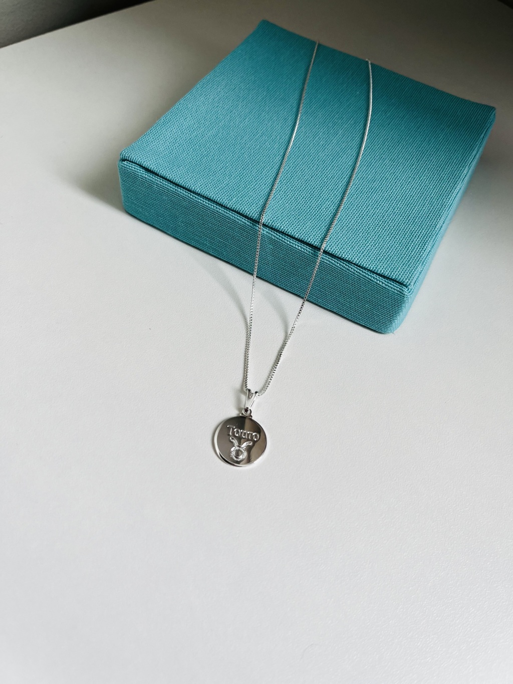 colar com plaquinha de signo com a parte trazeira gravada ,banhado a prata e hipoalergênico.