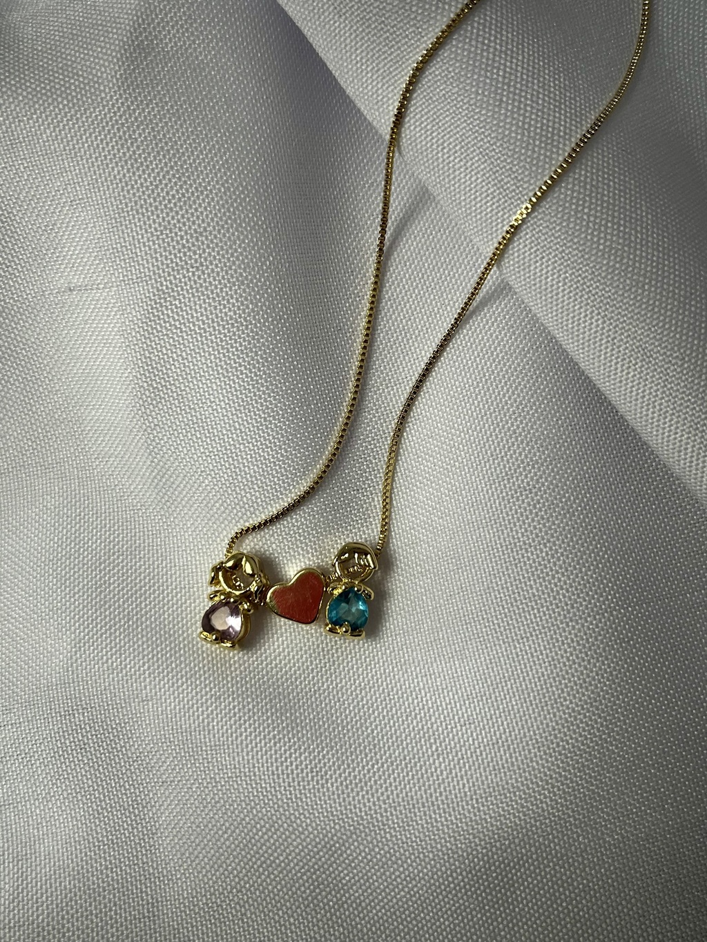 Colar com Pingente de Filhos e Coração - Amor que Brilha