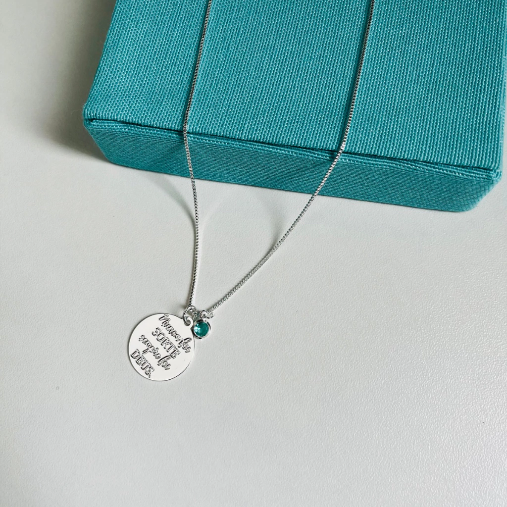 Colar medalha nunca foi sorte sempre foi Deus com pingente ponto de luz banhado a prata e hipoalergenico.